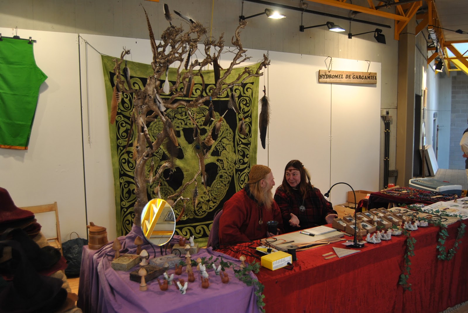 Nous avons profité du marché pour goûter à tous les mets proposés, et ne pouvons que vous conseiller les hydromels de Milfort ainsi que le vin Le Mille et Une Étoiles, ainsi que l'hypocras de la Chaudasse (ces artisans sont présents à pratiquement toutes les fêtes médiévales citées sur le blog, et entre autres, à la fête de Verlaine les 25 et 26 mai).